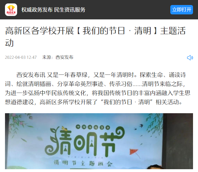 | 高新区各学校开展【我们的节日·清明】主题活动 |
